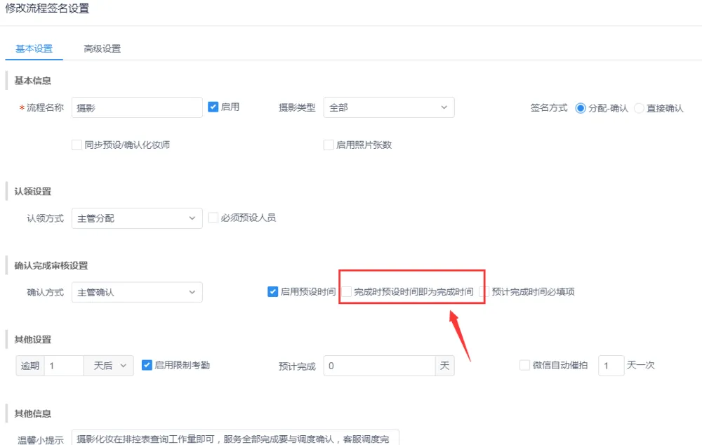 答:假定您录入的之前订单是4月1号拍摄的,那您可以选择将流程设定为【预设时间即为审核时间】的选项;这样就可以确认到之前的时间;