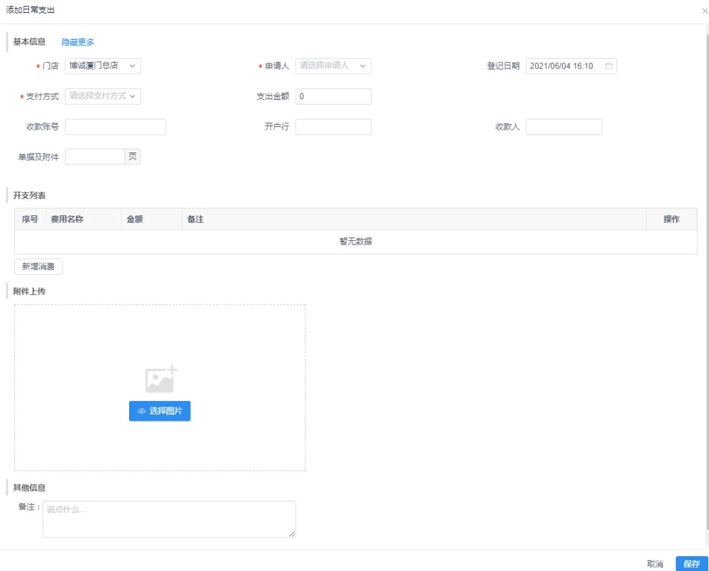 第二种方式是启用审批的方式,这种也是目前全新博诚saas版本比较推崇的支出方式,这种更加科学合理也更符合支出的严谨性。