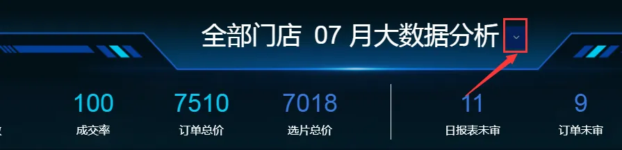 在大屏的顶部,有店名称,在后方可以点下拉键分别切换分店。请注意,在数据分析里面打开运营大屏后会全屏,这时如果要退出,请点击“ESC”键2次就可以退出全屏模式!(如下图)