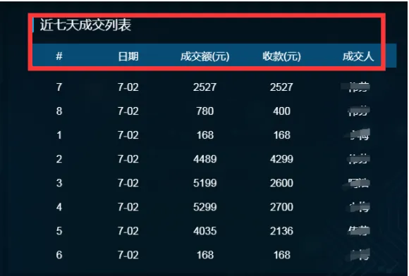 该项目主要以滚动的方式显示最近7天订单成交的情况。包含价格和成交时间和成交人员。