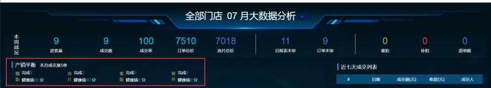 产销平衡主要是分析这个月份内主要的几个流程的完成情况,比如摄影完成的数量以及该数量占预设多少的情况,健康值越高说明流程完成的越好。