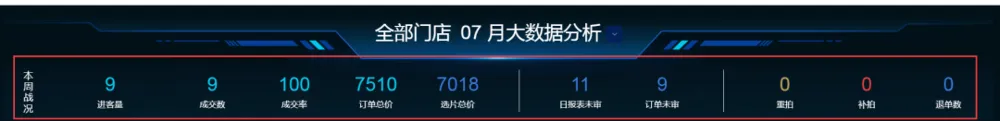 本周战况:本栏显示最近一周基础运营的数据,这个数据包含:订单信息、选片信息,以及报表审核等基础的运营数据信息。(如下图)