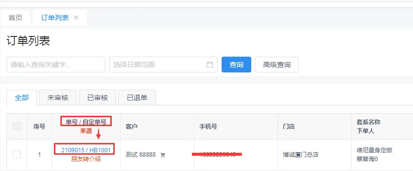 有企业在录入订单时,希望增加自定义的单号,增加后和系统自动生成的订单同时显示,方便查核。