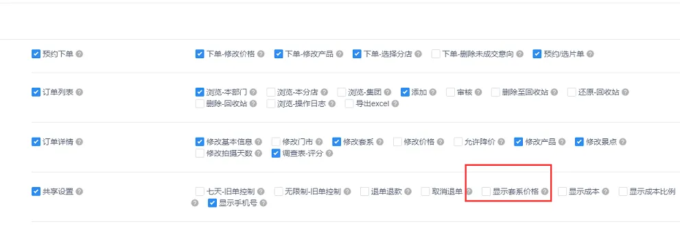 根据多家客户的使用情况,通过调研,细化了套系订单价格的权限,方便企业依据员工职务等不同设定想要的权限。