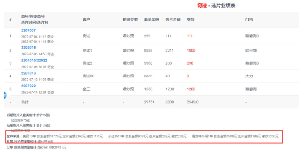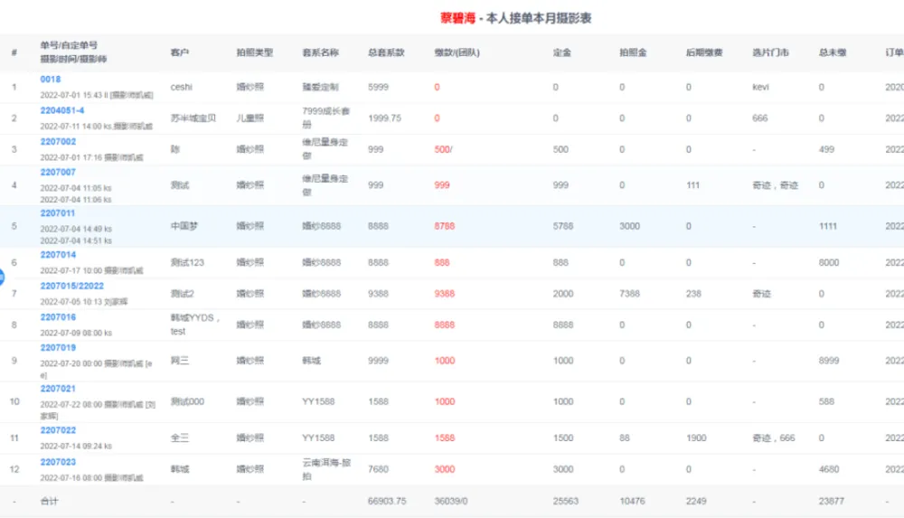 在工资表中,修改工资表本人接单本月摄影/取件业绩计算方式;本人接单本月摄影表指的是该员工的订单在本月被服务拍摄的汇总。