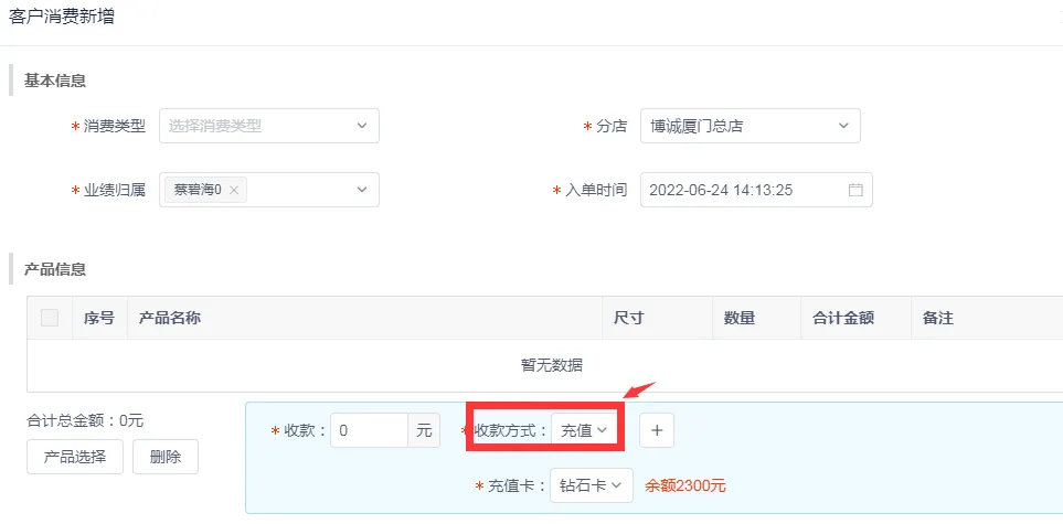 只要客户账户名下有余额,即可用于其他的消费抵扣,操作方式是普通的收款补款等操作是一样的,只是需要把收款方式改成充值即可选择会员卡并识别余额和抵扣。