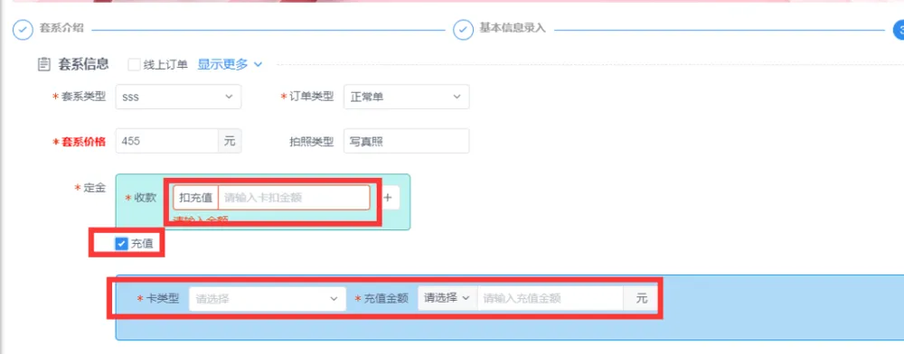 第二种,客户下单的时候直接充值并消费订单的,比如充值1000并且马上扣除套系订单,这种为了方便操作,可以直接在下单的时候同步充值并抵扣