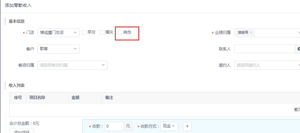 在原有零散收入的基础上,增加其他项,且该项目的添加将同步业绩相关信息在员工工资表中显示。