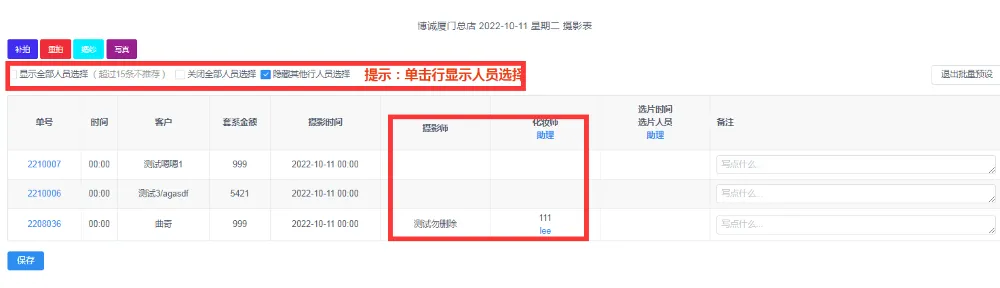 在排空系统中,可以对每天的摄控进行批量安排服务人员以及批量确认每天的工作;操作时还额外增加显示与关闭设置。方便在预设的时候仅预设未安排的。