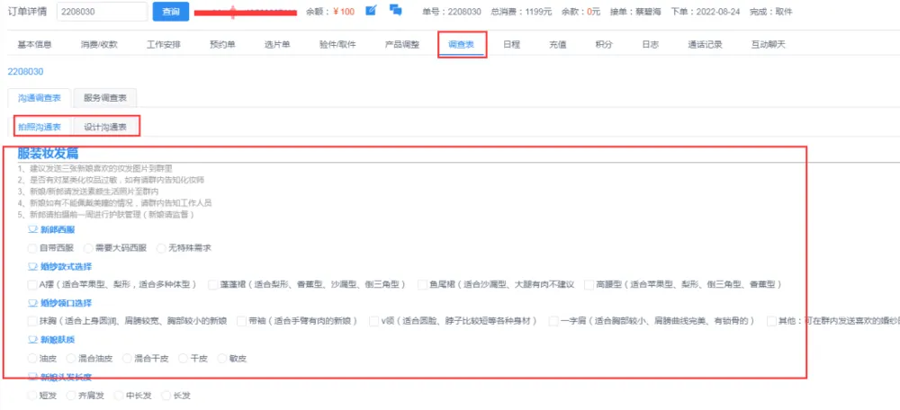 很多企业在客户拍照之前,为了提高对客户需求、要求、特殊事项的了解,或做一个拍照的调查。那么我们博诚云系统目前有调查设置的功能,调查设置包含:下单调查、拍照调查和设计调查。尽可以的将每个客户的相关喜欢了解清楚来更好的服务客户;