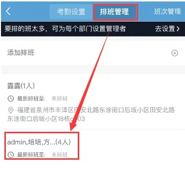 考勤设置需要在移动端APP上设置。首先需要在设置中新增排班管理,选择对应的排班人员后可以点进去设置对应的考勤设置。