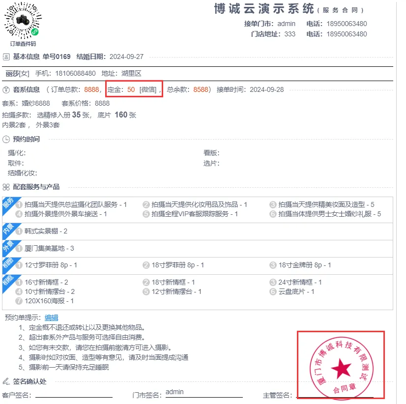 作用:在原有下单后的预约单上,当订单客户是缴纳定金时,预约单不再显示收款而调整为【定金】,同时在预约单电子章位置下调以防盖住上方相关的票据说明。