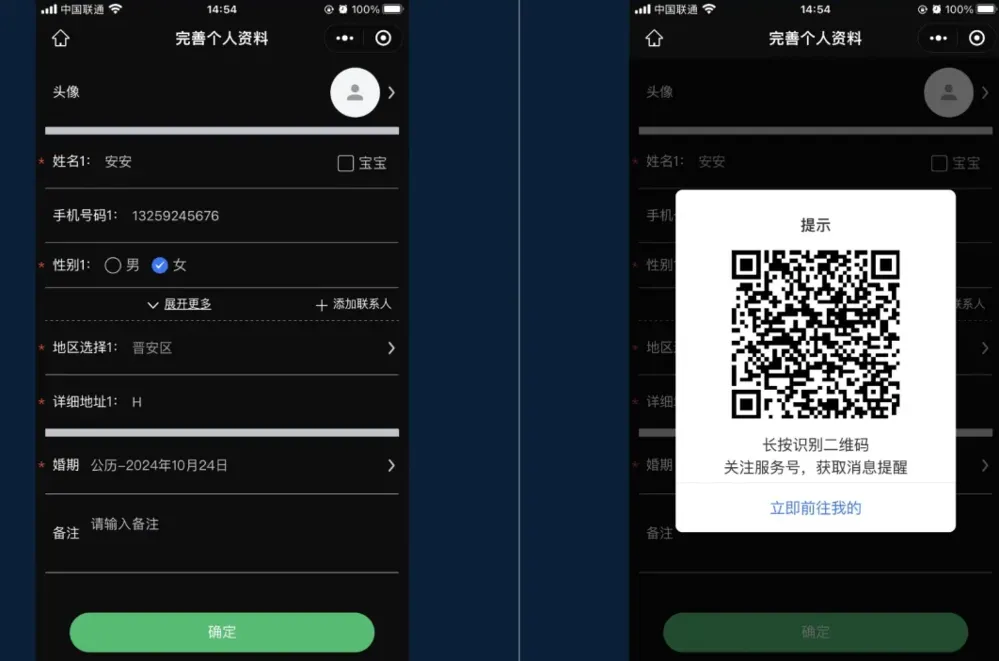 客户扫码输入资料的这个功能,可以针对线上或店内的客户。在客户确定的时候可以第一时间让客户扫码填自己的信息,避免名字多音词等问题输入错误、同时可以直接第一时间填好客户信息自动回填到订单页面,减少员工输入客户信息的时间。最后还可以主动绑定小程序信息,后续可以直接执行电子签名等多个自助查询功能。