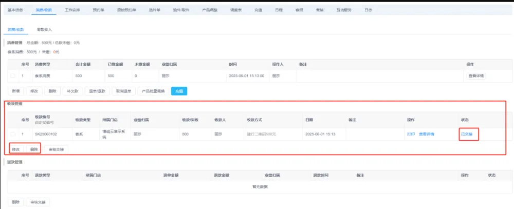 上文说到,收款有些是根据订单自动生成或者相关人员操作自动显示的。因此人员操作或多或少会出现操作错误。而有时候审核大部分企业会授权于前台收银;那如果误审核后发现收款有问题的,要怎么修改呢?目前我们提供两种方式修改: