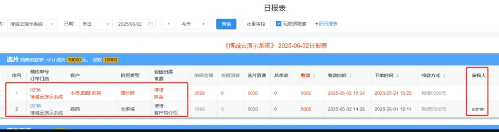 企业用户在使用#博诚云 旗下摄影ERP时,针对客户订单会涉及到客户每笔收款的收款管理记录。该记录了客户每笔金额缴纳的时间、方式以及是否审核等。这个为企业用户提供了财务标准化的重要辅助,因此审核收款记录对后续财务查核的帮助是很大的;