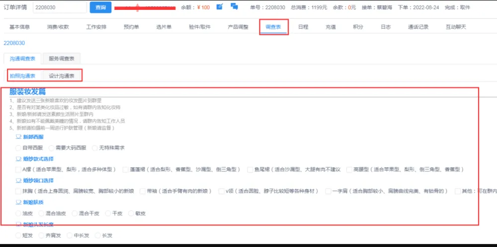既然调查设置是针对客户需求或者要求的,那么就可以针对某个客户进入这个客户单号里面的调查表可以进行登记。该功能支持客户在小程序中自助填写,推荐企业用户通过预约单里面的小程序让客户自助登入哦,登记后可以进行查询。