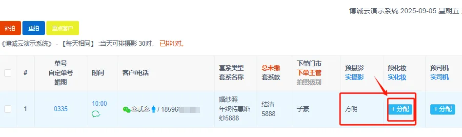 为了方便客服调度或者负责安排摄控人员,当企业用户在将摄影与化妆流程合并的情况下,如果仅安排摄影师后增加在排空中可以快捷安排化妆师的预设服务,无需点击单号进去通过修改来增加化妆服务人员安排。