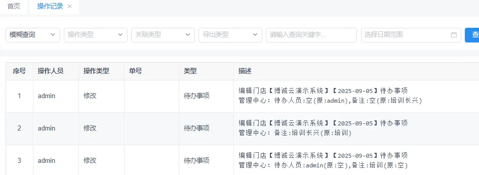 如果涉及增加修改或删除这部分的操作,亦可在操作记录中查询到操作记录,方便企业用户查询操作变动情况知晓责任人。您可以在软件左侧的【其他】中的【操作记录】中通过类型或内容查询。