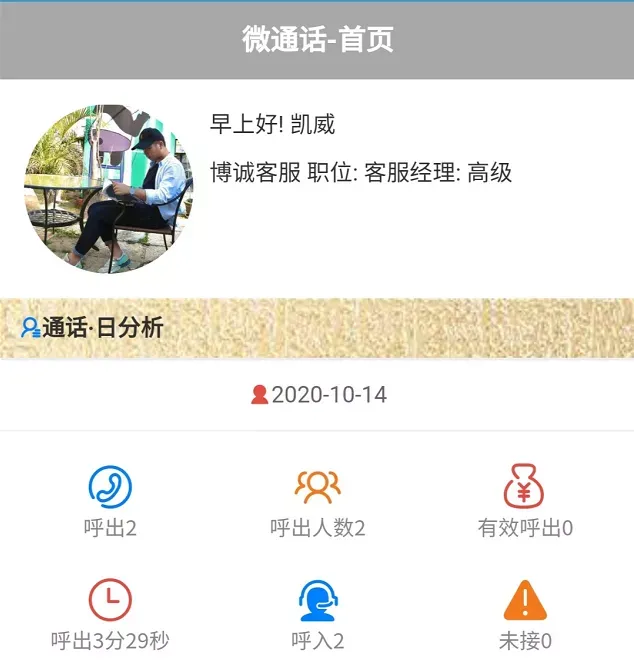 我们公司运用员工电话语音沟通信息记录、录音、以及相应的数据分析等(暂且仅支付安卓手机,且需要获取权限);将客户的语音可以用于营销分析,提高企业的客资跟踪效率、收益。微通话给您提供:日、周、月的通话分析(包含呼出/呼入)以及部门分析,员工的个人分析等,能够让您企业在客户服务与客资跟踪中有工具可查实现通话的有效性提升;具体能够给您带来哪些好处呢?