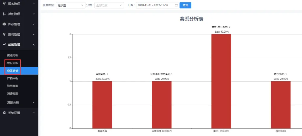 第三,客户的地区分析以及套系的分析必不可少,因为客户地区的分析可以让我们管理层知道自己客户所处地区的密集度,如果需要投放广告可以作为一个数据参考。而套系分析可以知道消费者的消费情况,对我们后续的订单套系定价以及活动价格的制定提供数据分析。