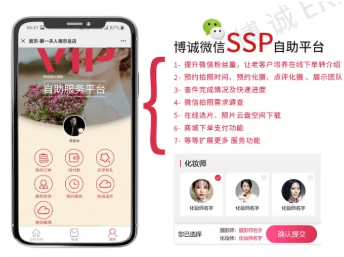 比如在摄影企业与消费者间的联系上拓展对接微信等更多的功能实现粘度;对内通过更多功能的APP满足基础工作的操作增加个性化的体验核心。