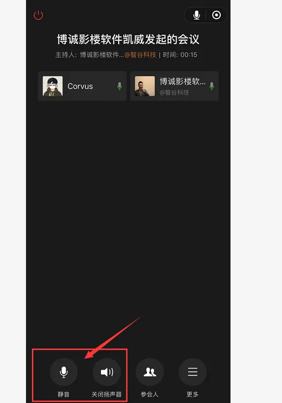 手机端和电脑端操作类似,都是点【话筒】关闭语音,这样就是静音。如果后面需要发言的点击开启即可发言。